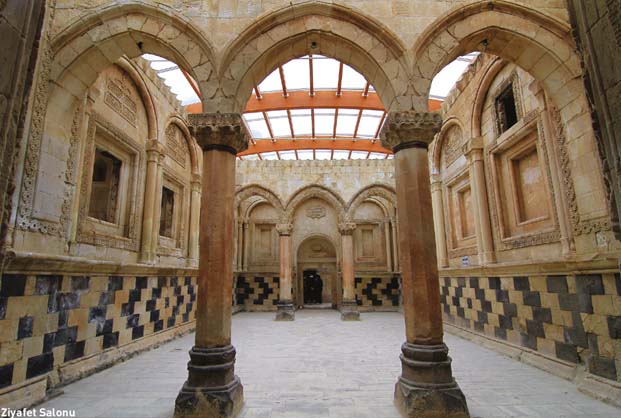 Bu avlularda önemli bir şey dikkatinizi çeker, simetrik olmayan bir biçimin kullanıldığı. İyice bakınca bunun nedeni de anlaşılır, avluların bu biçimde tasarlanmasının nedeni, işlevselliği dikkate alınarak, ihtiyaca göre genişletilebilen bir özelliğinin olması. İslam mimarisi matematiğe ilahi bir nitelik vermiştir. Yinelenen geometrik desenler ve simetri tanrının kusursuzluğunu anlatmak içindir aslında. Evet, gerek bu yapı, gerekse yapının süslemelerine yönelik Tanrı’nın kusursuzluğunu görmek mümkün, ayrıca nakış gibi işlenen süslemelerde geometrik şekilleri de görmek mümkündür.